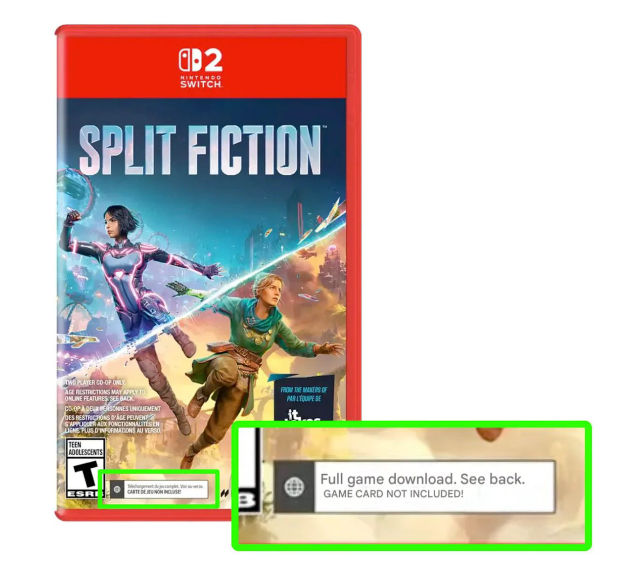 Split Fiction на Nintendo Switch 2 в физическом издании будет включать не картридж с игрой, а просто код на загрузку.